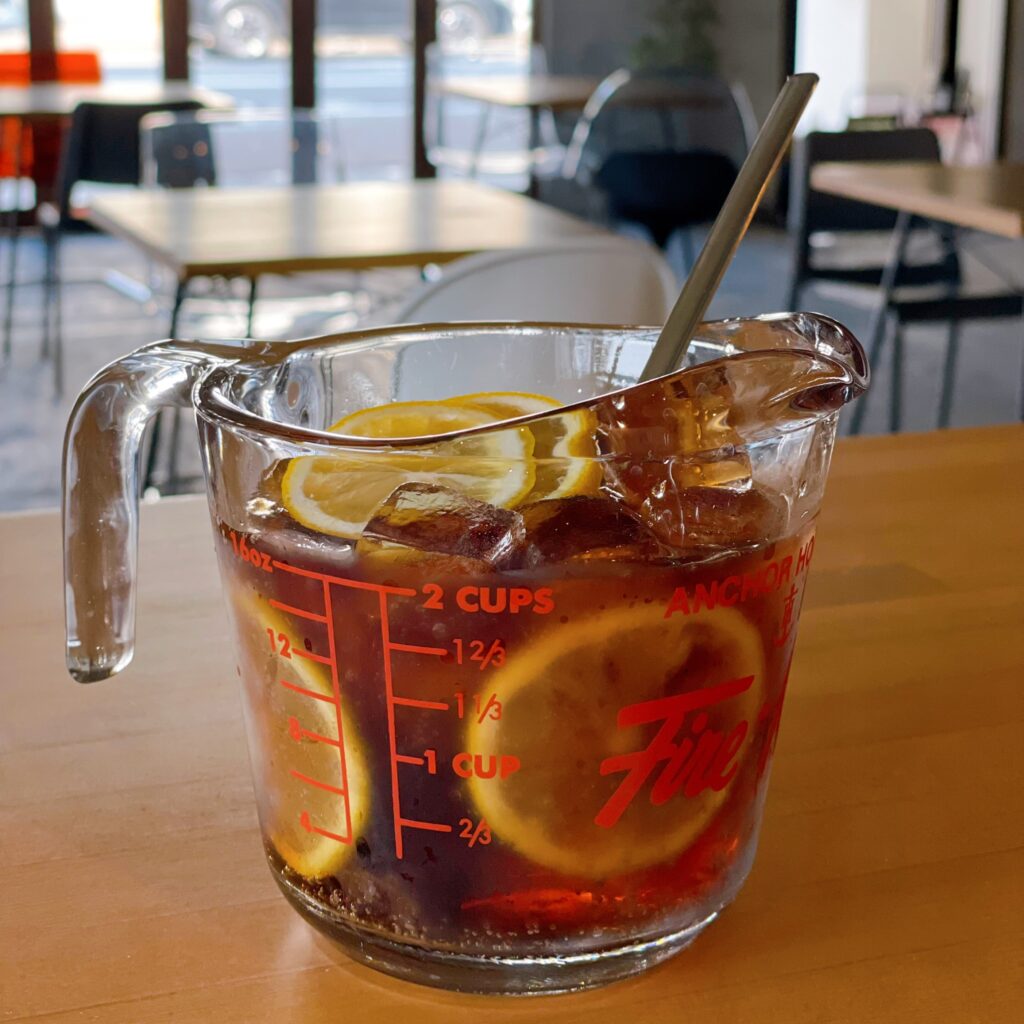 レモンスライスを潰しながら味の変化を楽しめるコーラです。